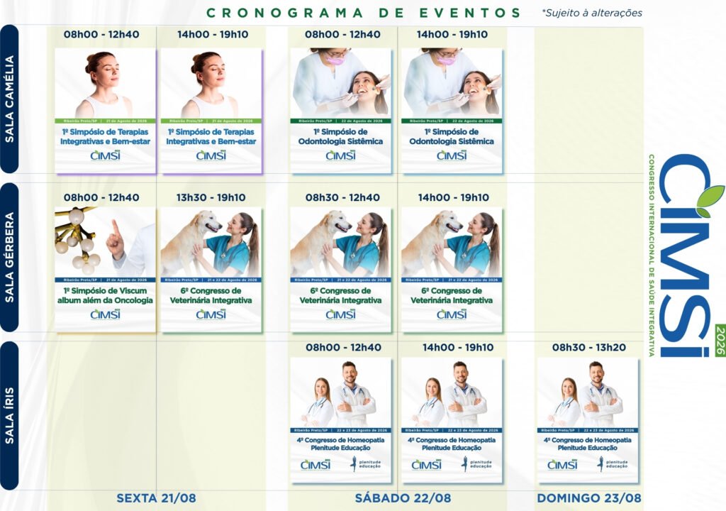 Os conteúdos apresentados no CIMSI – Congresso Internacional de Saúde Integrativa possuem caráter exclusivamente informativo, educacional e científico, não sendo prescritivos nem substitutivos da prática clínica individual.